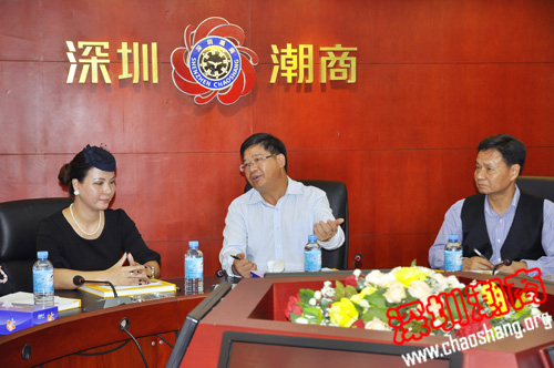 2014年11月27日下午,深圳市潮籍女企业家一行12人到访深圳市潮汕商会,商谈成立深圳潮商女企业家分会(暂名)相关事宜。深圳市潮汕商会会长黄榕城、驻会常务副会长黄育宏、副会长兼秘书长丁伟斌、副秘书长李楚芬、余彬生等出席接待并座谈。