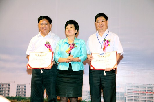 揭阳市副市长林丽娇为黄榕城会长等颁发校友会荣誉会长聘书