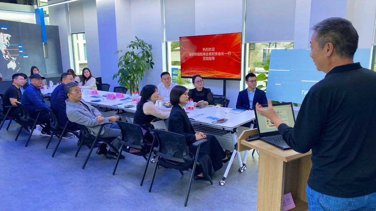 2024年1月18日下午,深圳市揭阳商会会长黄时余带队走访副会长黄柱东企业一一哈工天愈集团,受到了哈工天愈集团创始人杨炽夫,哈工天愈集团智慧党建事业部总经理马耀红,哈工天愈集团股东合伙人、深圳市揭阳商会副会长黄柱东等的热情接待。