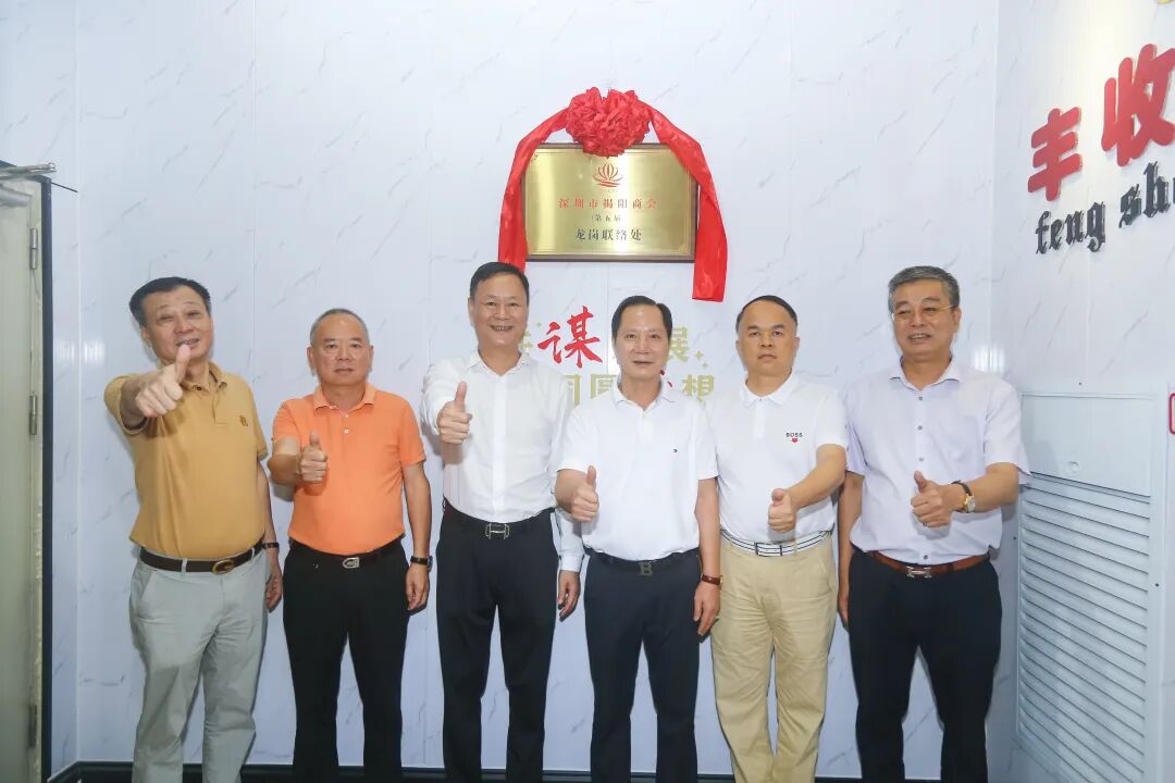 2024年6月7日,深圳市揭阳商会第五届龙岗联络处揭牌仪式圆满举行。深圳市揭阳商会会长黄时余,名誉会长林秀鑫、黄旭初,执行会长邱杰钦、倪潮锋,龙岗联络处主任吴国锋共同揭牌,深圳邮政龙岗局副总经理张炳兴,深圳市揭阳商会常务副会长周小山、林卓群、孙剑波、谢晓鹏,关工委主任杨瑞彬,理事陈柏霆、侯俊茂,会员王泽涛,秘书长吴楚霞等一同出席。