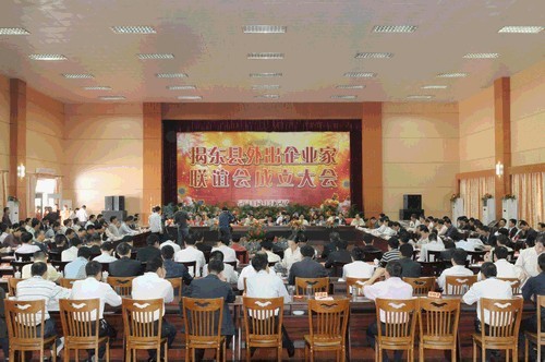 10月27日,揭东县外出企业家联谊会成立大会在揭东县东海商务酒店隆重举行,我会黄榕城会长当选为首任揭东县外出企业家联谊会会长,黄畅然先生当选为名誉会长。我会共有几十位揭东籍企业家参加揭东县外出企业家联谊会并担任重要职务。